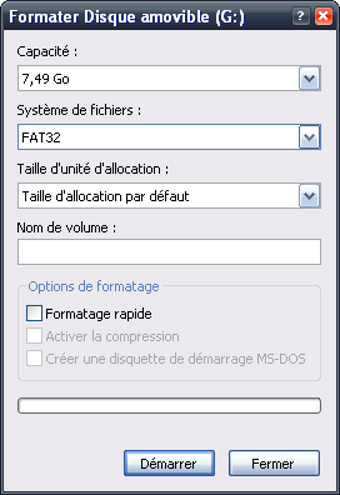 Deux boutons présents en permanence permettent de lancer un formatage ou de faire une capture d'écran de l'interface pour conserver les résultats des tests. En revanche aucune option d'export n'est proposée pour les exploiter sous un autre format.